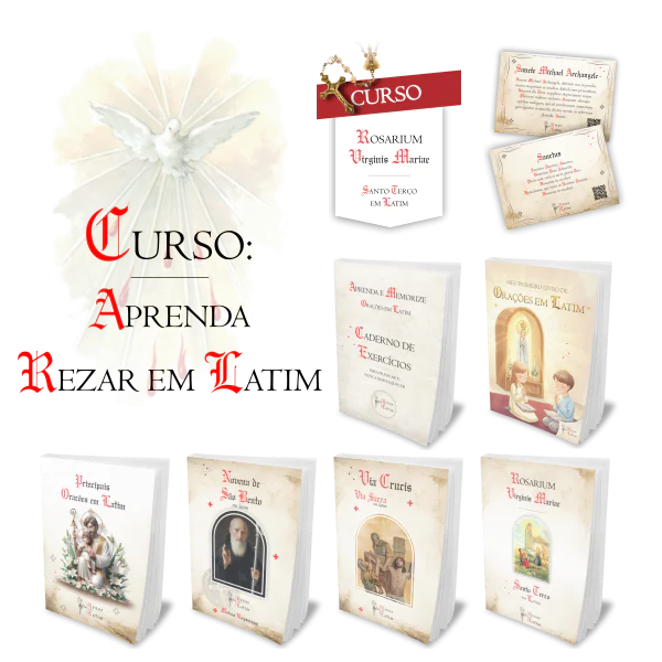Esta é uma oportunidade única para você ter em casa todos os materiais do Rezar em Latim e aprofundar sua fé por meio da beleza da Tradição e da Língua Sagrada da Igreja.